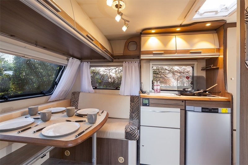 As standard all Luxor models feature a large Dometic 90-litre; 3-way fridge, chilling your food and drinks on 12V, 240V & gas, a Dometic 2-burner hob and Thetford sink for cooking and cleaning up. 2 large over head lockers, a large lower cupboard and smaller upper cupboard with cutlery draw provide ample storage.